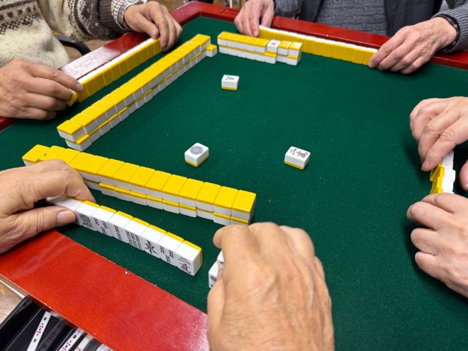 健康マージャンの様子先日、中央公民館の健康マージャンのサークルを訪問。60代から90代までの男女60人ほどの方が参加され、皆さん楽しそうに勝負されていました。点数の日とポイント制の日を作る、皆勤賞を作るなど、全員が楽しめるルールを工夫し、フレイル予防の意識も想起させるサークルは、15周年を迎えたとの事です。