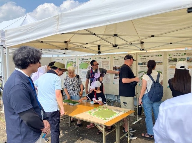 当日はパネル展示だけでなく、改修後のグラウンドでも行えるスポーツ〈スラックライン〉の体験コーナーや【中央公園グラウンドでなにがしたい?投票】を実施し、大変多くの市民の方々に足を運んでいただきました。当日ご参加された皆様、本当にありがとうございました。