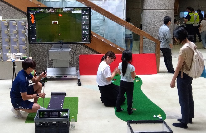 オープンハウスでは、資料によるパネル展示だけでなく、使用予定の人工芝とウレタン舗装のサンプル展示、シミュレーターを使用したパターゴルフ体験や【中央公園グラウンドでなにがしたい?投票】を実施しました。当日ご参加された皆様、誠にありがとうございました。