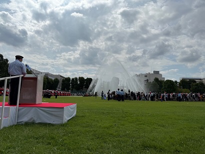 北多摩地区17市の消防団が一堂に会する消防大会が、ブリヂストン野球場グラウンドを会場として、実に18年ぶりに小平市で開催されました。当日は消防ポンプ車など約40台による市内パレード走行が行われ、消防団の雄姿を多くの市民の皆様にご覧いただくことができました。また、会場では東京消防庁音楽隊・カラーガーズ隊による華やかな演奏が披露されたほか、各市消防団による基本操法演技、さらに17市消防団による迫力ある一斉放水演技が行われ、大いに盛り上がった大会となりました。