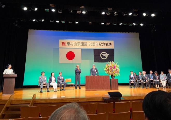 東村山駅開業130周年記念式典が、東村山市立中央公民館で挙行されました。式典では、オープニングムービーで開業時から現在に至るまでの様子が上映されました。今後とも、同じ西武線沿線の自治体としての連携を深め、地域のまちづくりを進めてまいります。開業130周年、誠におめでとうございます。