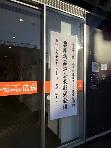 第35回小平市産業まつりで行われた、農産物品評会及び果実品評会の表彰式が小平ファーマーズ・マーケットで開催されました。生産者が丹精込めた農産物は、どれも形や色、艶など大変立派なものでした。ご受賞おめでとうございます。